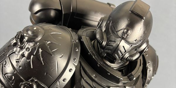 Körper ist aus grauem Resin gedruckt und später schwarz grundiert. Die Kopfplatte ist aus durchsichtigem Resin gedruckt.